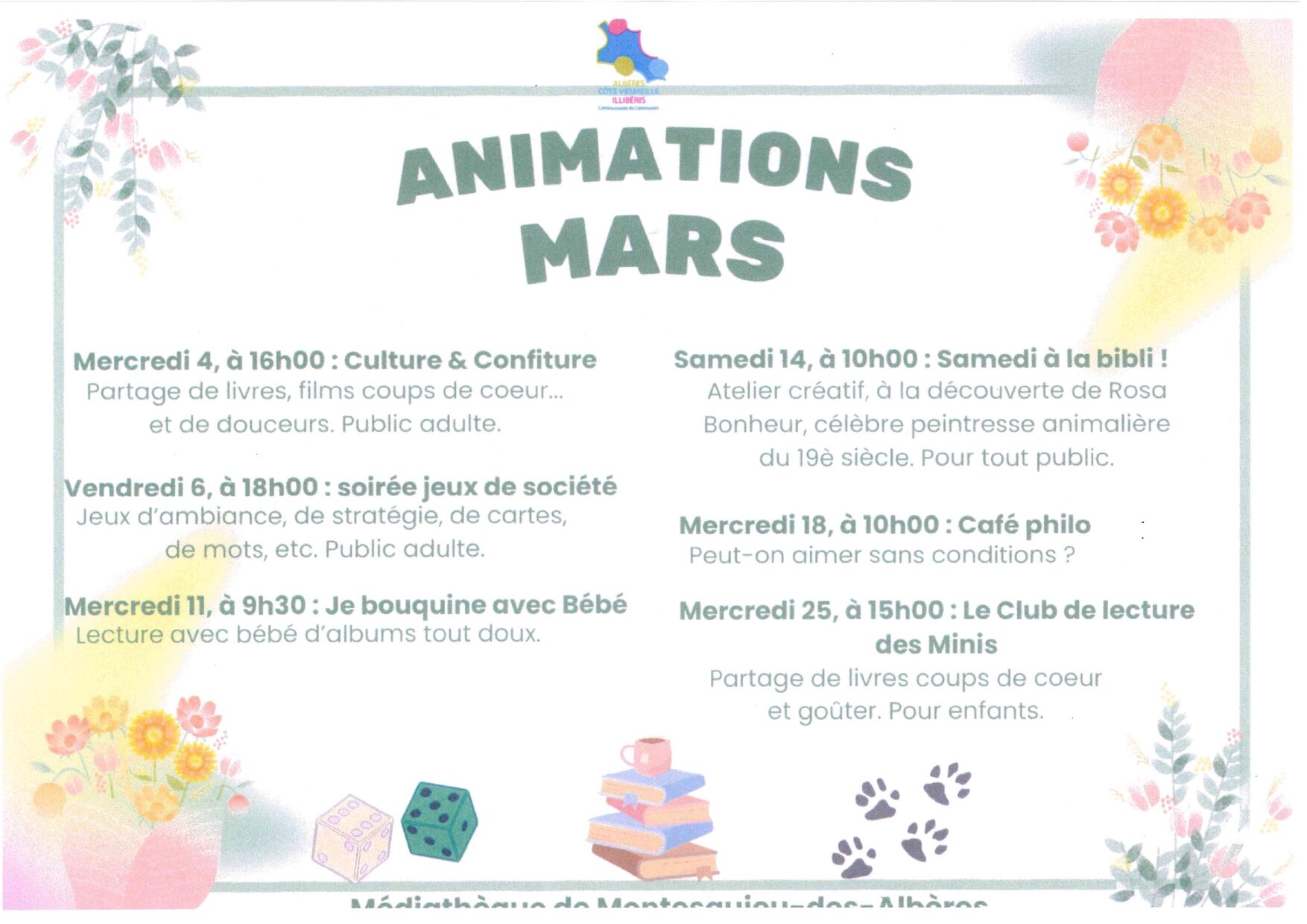 Accueil > Flash Infos > ANIMATIONS MARS 2026 MEDIATHEQUE INTERCOMMUNALE