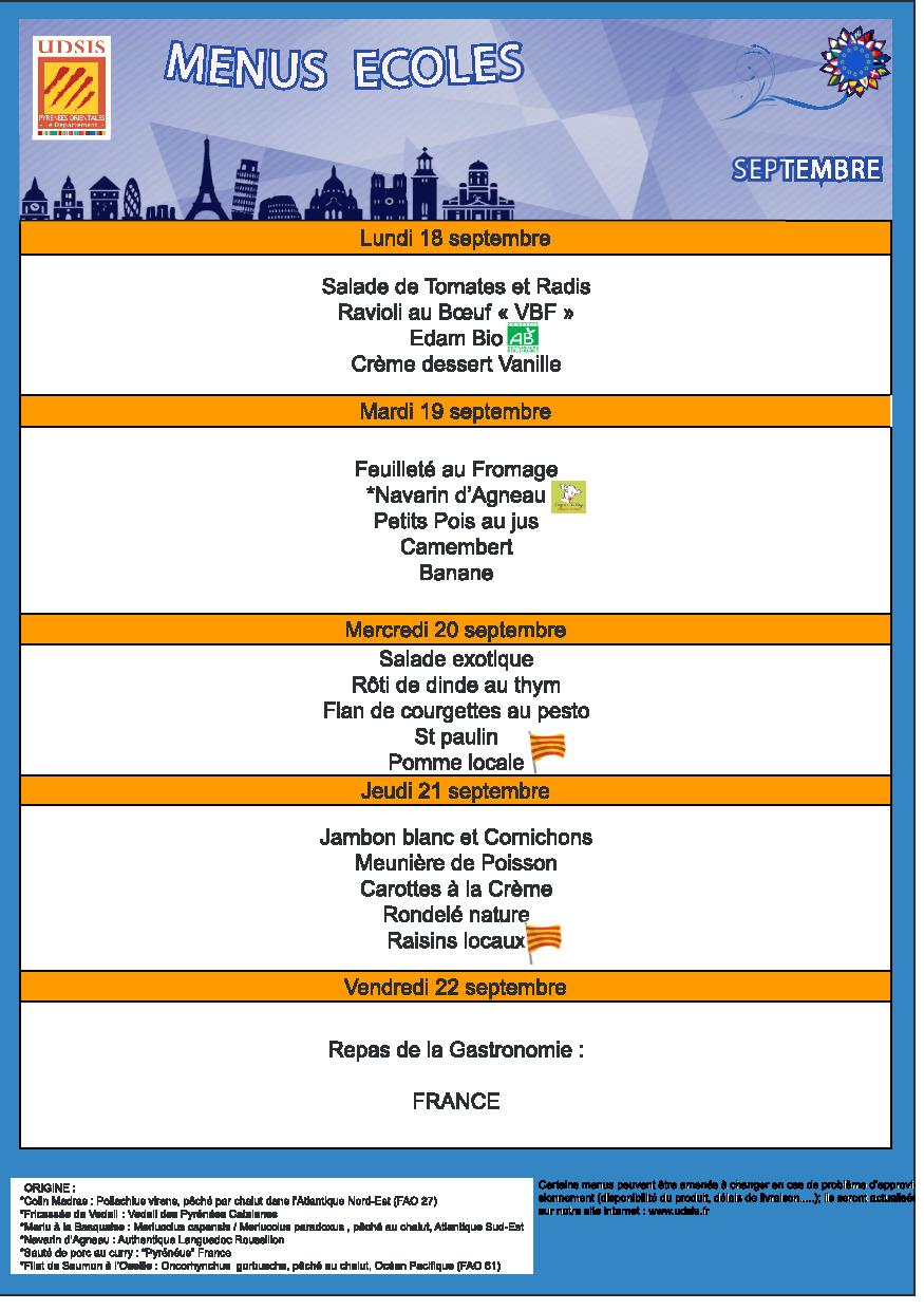 Accueil > Enfance et jeunesse > Cantine > menus scolaires3 09.2017