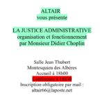 Chers amis d’Altaïr, Conférence de Monsieur Didier Choplin « La justice administrative, organisation et fonctionnement » mercredi 12 novembre 2025 salle Jean Thubert à Montesquieu-des-Albères. L’accueil se fera à partir de 18h00 et la conférence débutera à 18h30. Un apéritif clôturera la
