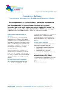 Accueil > Actualités > La Communauté de communes Albères Côte Vermeille Illibéris (CCACVI) communique > 20250904-CP_CCACVI-DDTE-reprise_permanences_photovoltaïques_page-0001