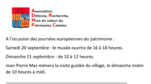 Accueil > Flash Infos > L’Association Défense, Recherche, Mise en valeur du Patrimoine Catalan vous invite aux Journées européennes du patrimoine 2025 > Capture d’écran 2025-09-17 102244